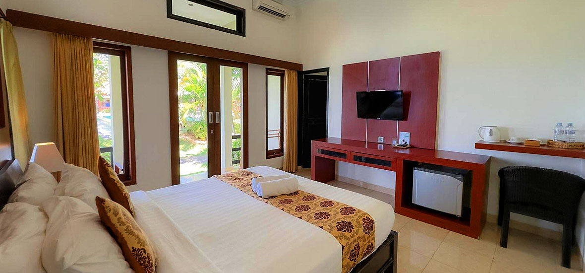 These comfortable air-conditioned room feature 1 double bed, an bathroom with shower facilities, and balcony/terrace with garden view.