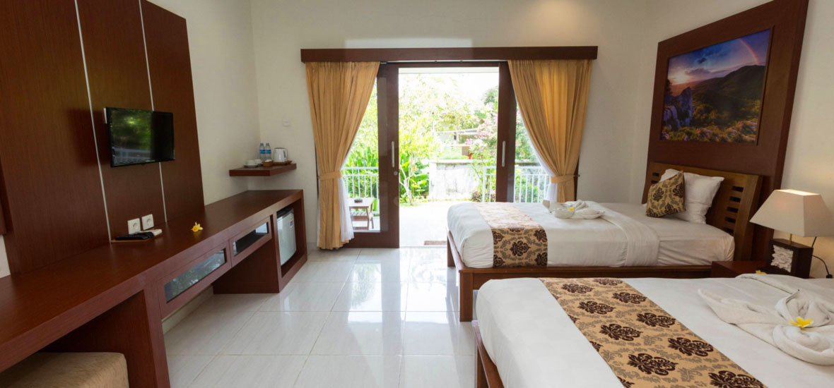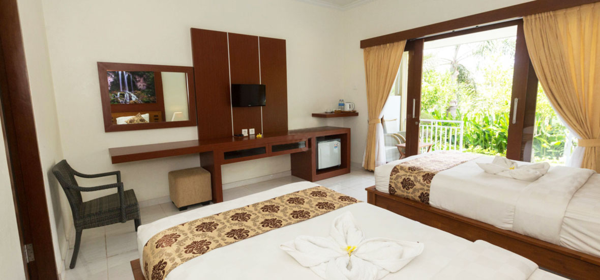 Accommodate up to two people, these standard twin room features with 2 single beds, an en-suite bathroom with shower facilities, and balcony/terrace with garden view.
